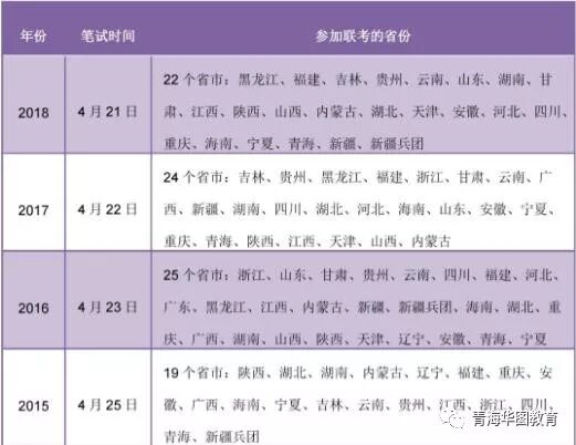结合以上信息,历年参加联考的省份都将会在2019年4月20日举行。参加联考的省份都保持在20个以上,在同一天,且大部分采用同一题库中的题目进行考试,试题的差异度并不大,体现在个别题目设置、题目数量和分值上;当然,个别省份会单独自主命题,如吉林、山东等。