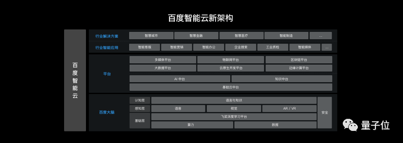 为更好地支持新战略,百 度智能云架构也迎来更新,将新架构分为三层: