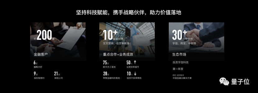智慧金融已服务近200家金融客户,构建超过30家的合作伙伴生态,并跻身中国金融云解决方案领域第一阵营。