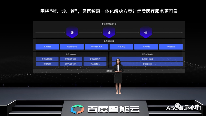 最后,智慧医疗致力于缓解国内医疗资源供给不足和分布不均的状况,以医疗AI循证为底座,构建了多种医疗智能应用,包括筛查、辅助诊断、慢病管理,并推出相应的解决方案。