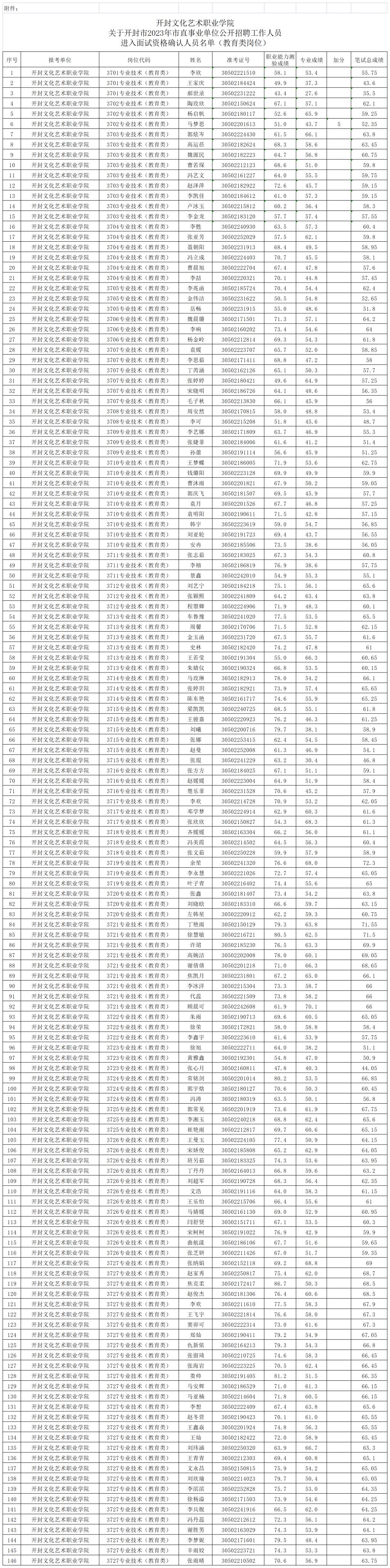 附件:开封文化艺术职业学院关于开封市2023年市直事业单位公开招聘工作人员进入面试资格确认人员名单(教育类岗位)