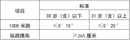 3.参加体能测试考生年龄计算截止到体能测试当天。即2026年2月3日进行体能测试的,1995年2月3日(含)之前出生的考生执行“31岁以上”测试标准 ;2026年2月4日进行体能测试的,1995年2月4日(含)之前出生的考生执行“31岁以上”测试标准 。(出生日期以身份证为准)