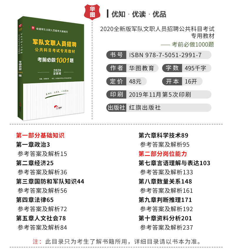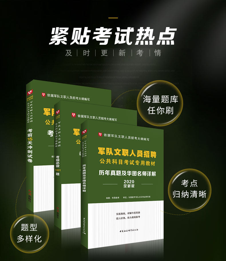 2020华图版—军队文职人员招聘公共科目考试专用教材 真题+1001题库+15天冲刺试卷 3本