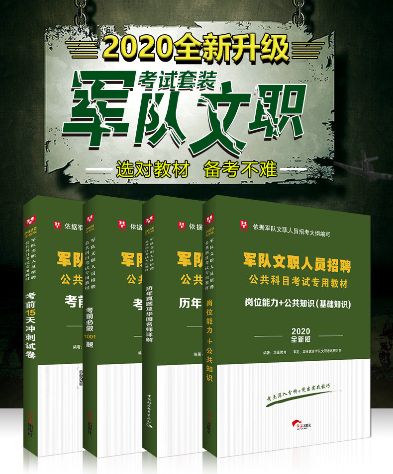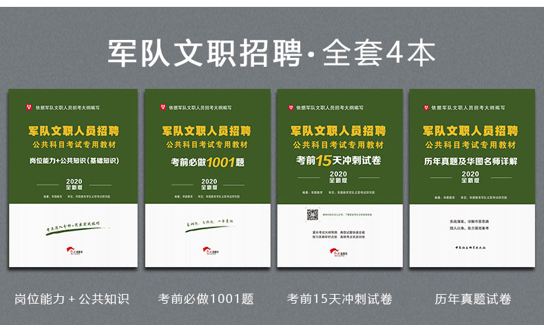2020华图版—军队文职人员招聘公共科目考试专用教材 教材+真题+1001题库+15天冲刺试卷 4本