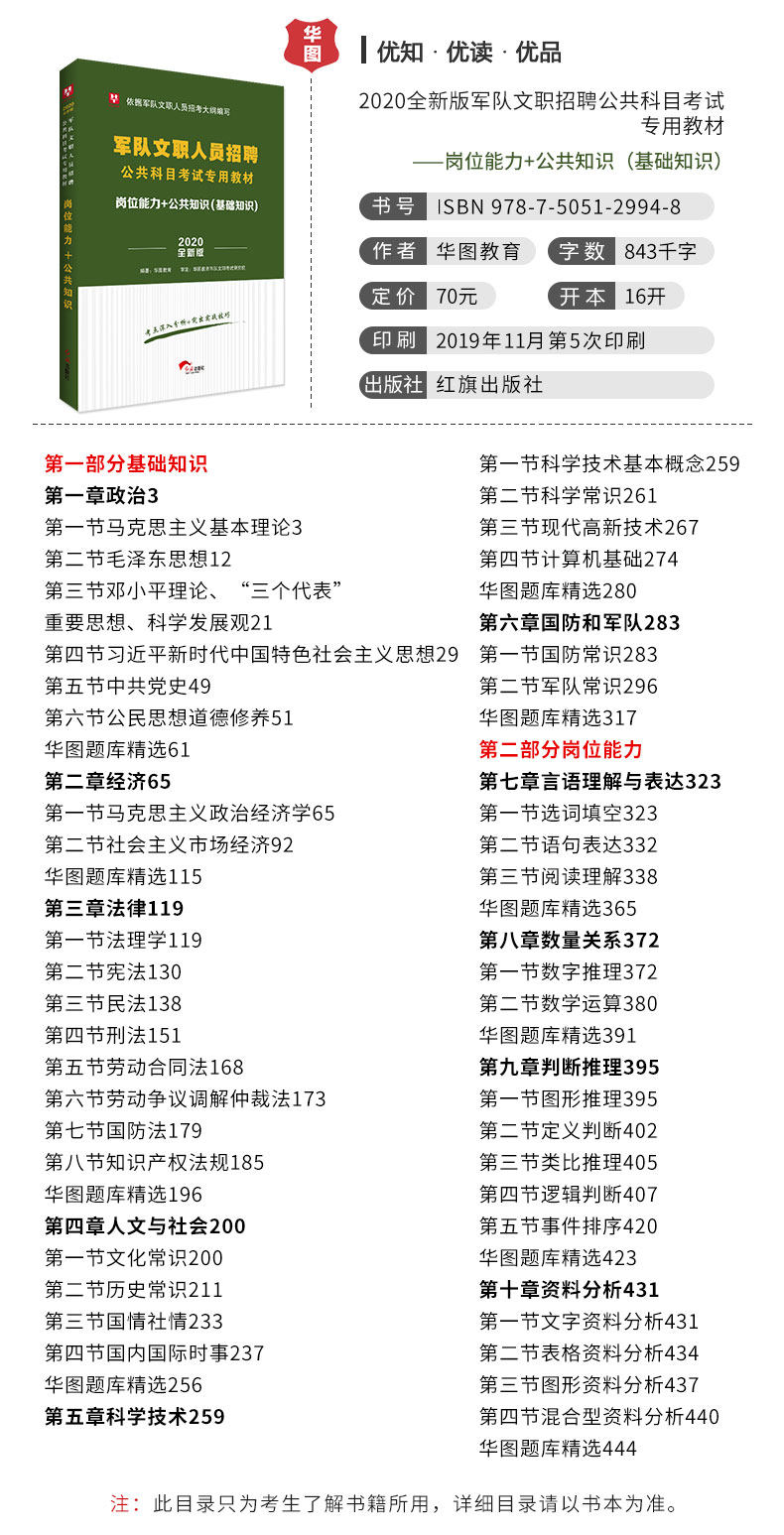 2020华图全新版军队文职人员招聘公共科目考试专用教材(岗位能力+公共知识历年真题试卷+考前必做10